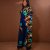 • Design: A button-down, longline jacket that can be worn open or closed for versatile styling. The jacket features a vibrant abstract floral swirl pattern in shades of teal, gold, and navy.