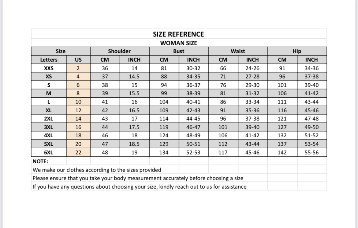 We recommend that customers provide their accurate measurements for a perfect fit.