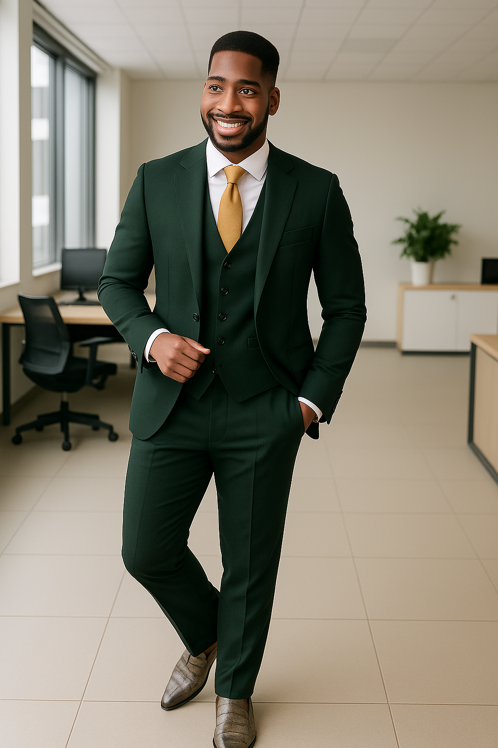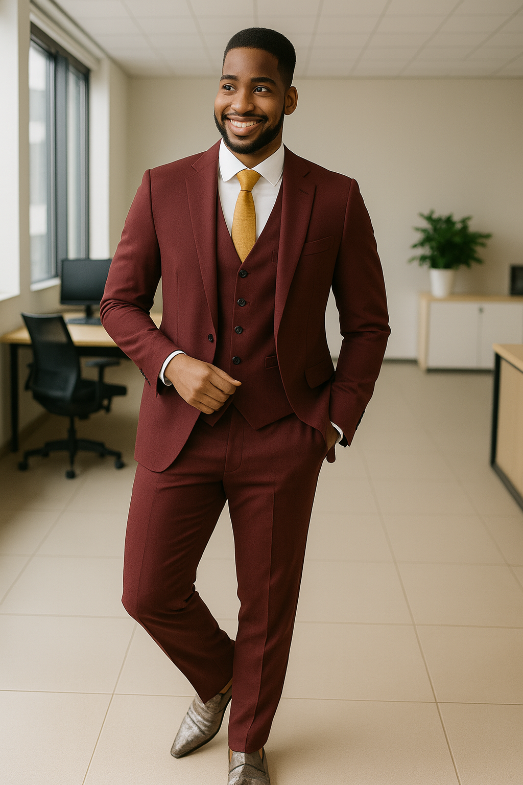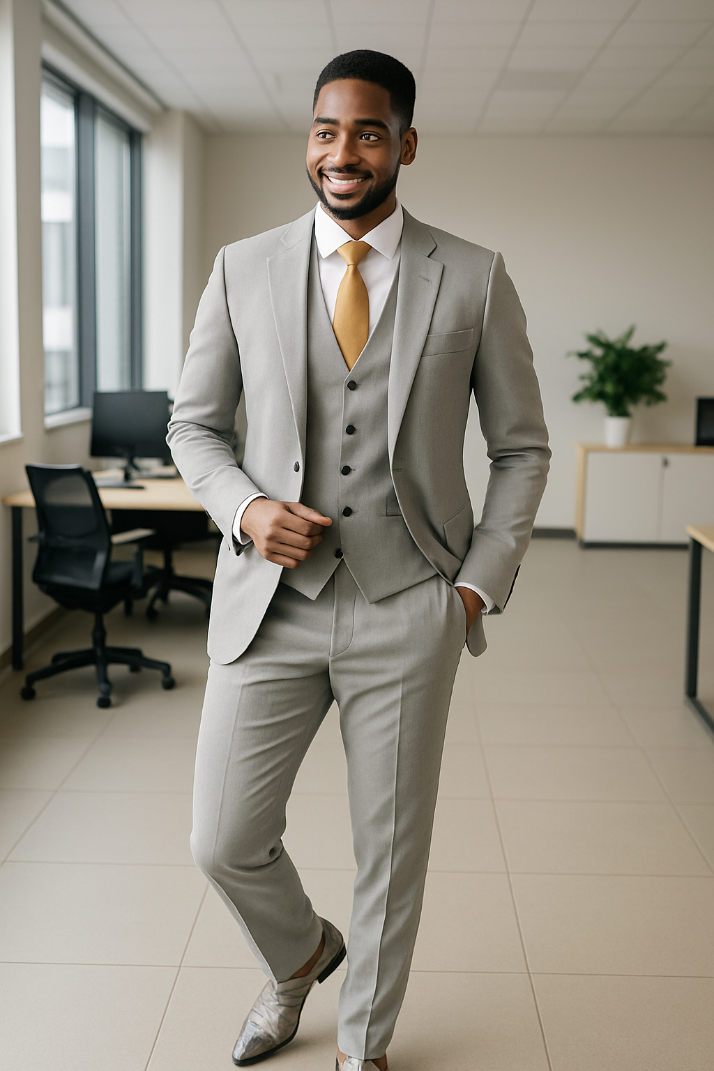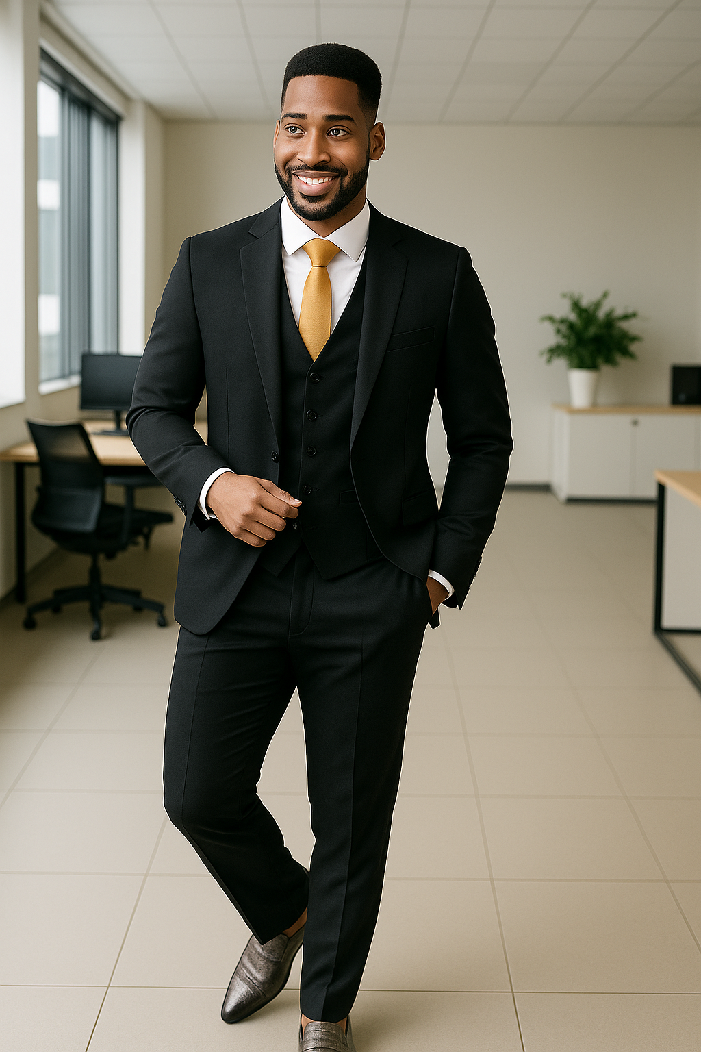 This premium 3-piece men’s suit is designed for the modern professional and fashion-forward gentleman. Tailored in a slim-fit cut, this suit brings together sophistication, comfort, and timeless style, making it perfect for both formal and semi-formal occasions.