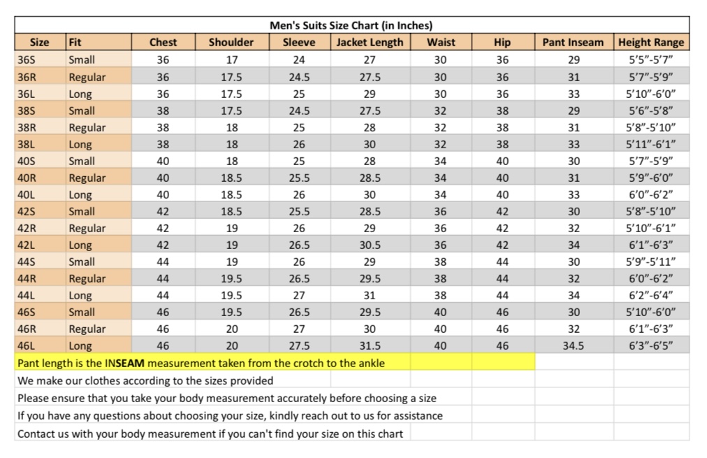 This suit is made to order to ensure a perfect fit. Please select your size from the size chart (included in images). For the best possible fit, we highly recommend providing your measurements in the ‘note to seller’ box at checkout.