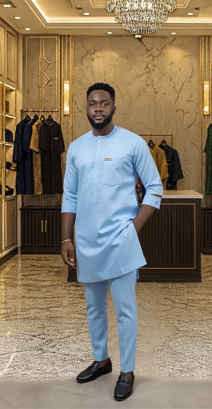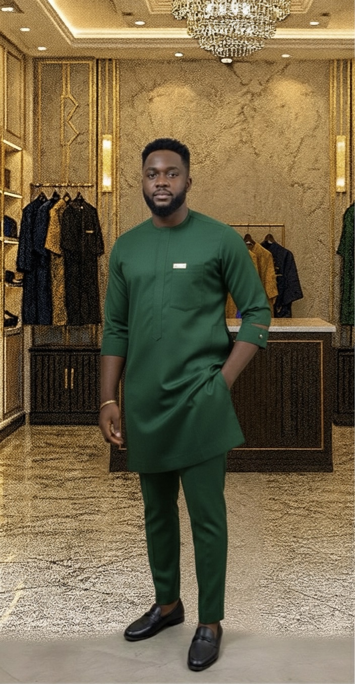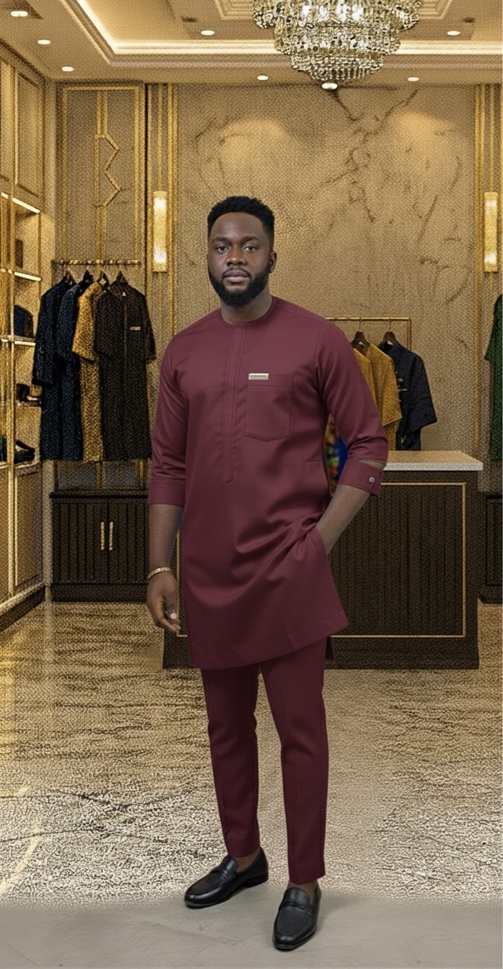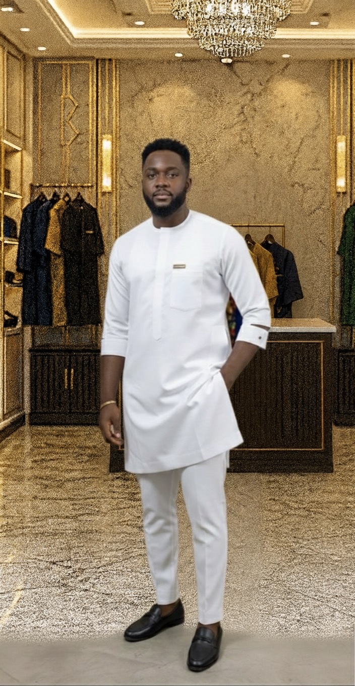 Each piece is handcrafted by skilled Nigerian tailors using high-quality polished cotton that feels soft against the skin, breathes well in warm weather, and maintains its structure for long-lasting wear.